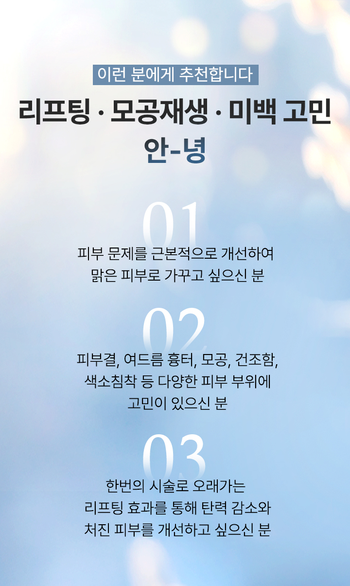 피부결, 여드름 흉터, 모공, 건조함 등이 고민이셨던 분