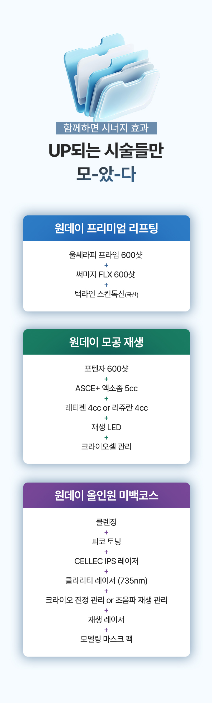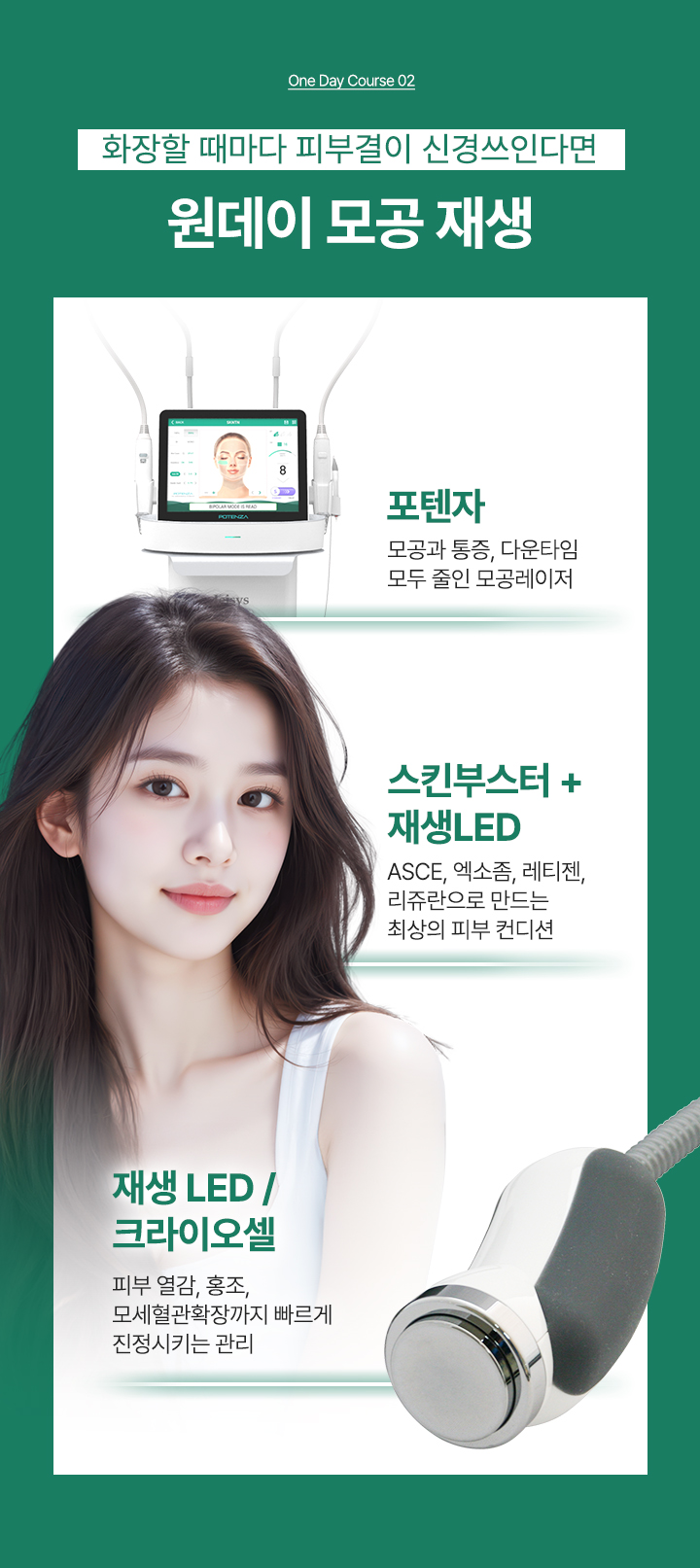포텐자 600샷 + ASCE + 엑소좀 5cc + 레티젠 4cc or 리쥬란 4cc + 재생 LED + 크라이오셀 관리